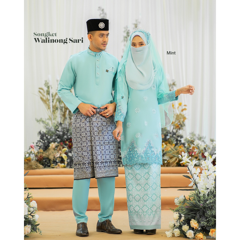 Sekali set tanjak, sampin dan veil. Songket mint green by sri einong bridal. Kurung songket walinong sari full set nikah 7 item 1=baju kurung songket walinong sari 2=baju melayu jebat 3=sampin 4=veil 5=shawl 6=butang baju melayu . Get great deals on traditional & ethnic wear chat to buy.